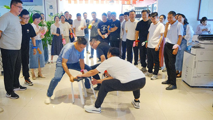「你畫我猜」環(huán)節(jié),每隊(duì)派出精兵強(qiáng)將,接力作畫猜詞,只見畫筆在白板上快速游走,傳遞時(shí),隊(duì)員們都眉頭緊鎖、神情專注地思考,努力挖取線索,直到后一人喊出正確答案,全場(chǎng)爆發(fā)熱烈的掌聲,團(tuán)隊(duì)的默契在這一刻達(dá)到,隊(duì)員們捧著豐富的禮品都露出勝利的喜悅。