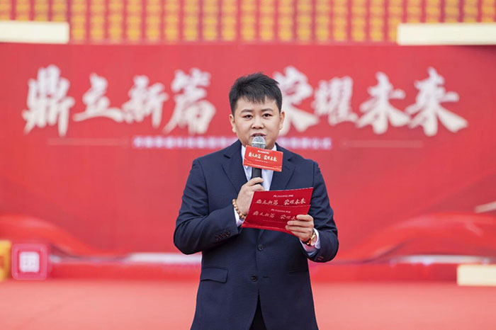 zui后,在熱情洋溢的現(xiàn)場氛圍中,河南榮盛科技集團董事長楚科奇發(fā)布了致辭。他首先代表集團向蒞臨現(xiàn)場的各位領(lǐng)導(dǎo)、嘉賓及全體員工表示熱烈歡迎與誠摯感謝。楚總回顧了集團十二年的發(fā)展歷程,指出新材料生產(chǎn)基地的建成,凝聚了全體榮盛人的智慧、汗水與堅守,是企業(yè)十二年奮斗征程上的重要里程碑,更是企業(yè)面向未來、決勝未來的戰(zhàn)略新起點。楚總強調(diào),新工廠的順利落成,得益于各級主管部門的大力支持與服務(wù),也離不開集團管理層的協(xié)同與一線團隊的奮力拼搏。他特別感謝了王海軍總經(jīng)理及集團管理層,稱贊其在項目戰(zhàn)略定位與資源配置中發(fā)揮的關(guān)鍵作用;同時,他也向宋廣林總經(jīng)理及全體建設(shè)者致敬,感謝他們不畏艱辛、全力以赴,將一片荒蕪之地打造為現(xiàn)代化智能工廠。