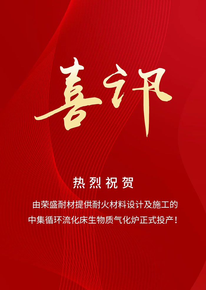 喜訊!由榮盛耐材提供耐火材料設(shè)計(jì)及施工的中集循環(huán)流化床生物質(zhì)氣化爐正式投產(chǎn)!