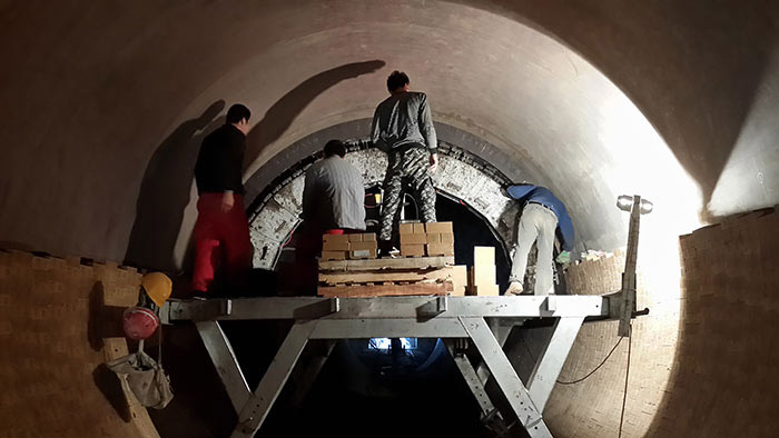 4、耐火磚砌筑前應(yīng)對回轉(zhuǎn)窖殼體進行全面仔細的檢查,將窖內(nèi)清掃干凈。