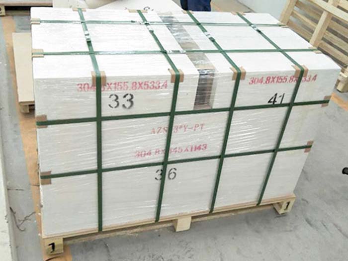 國內(nèi)玻璃窯爐外普遍采用電熔鋯剛玉磚和α-β剛玉磚、β剛玉磚砌筑。電熔鋯剛玉磚的高溫和抗玻璃液的性能優(yōu)異,這是它獲得了燒結(jié)耐火材料不可能獲得的抗侵蝕性非常好的斜鋯英石與α-Al2O3的共晶體,所以它作為玻璃窯爐熔化部池壁磚是非常合適的。