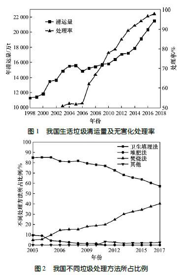 城市垃圾的無(wú)害化、減容化已成為政府和公眾非常關(guān)心的問題。隨著我國(guó)經(jīng)濟(jì)的迅速發(fā)展和人口不斷向城市集中,城市化進(jìn)程加快且數(shù)量和規(guī)模不斷擴(kuò)大,城市生活垃圾總量持續(xù)增多。近十幾年來(lái),我國(guó)城市垃圾無(wú)害化處理從無(wú)到有,無(wú)害化處理率也在逐年增長(zhǎng)(見圖1)。