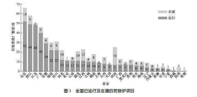 垃圾處理的主流技術(shù),在經(jīng)濟(jì)比較發(fā)達(dá)的城市,垃圾焚燒廠較多,垃圾焚燒發(fā)電在我國(guó)進(jìn)入了快速發(fā)展階段。如圖3 所示,截至2019 年2 月,我國(guó)(不包含港、澳、臺(tái)地區(qū))在運(yùn)行的生活垃圾焚燒廠數(shù)量已達(dá)到418座,還有167 座正在建設(shè),其中,機(jī)械爐排爐占80%以上。